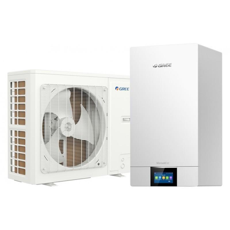 Тепловые насосы Gree GRS-CQ14Pd/NhH-M серии Versati III (сплит-системы) «воздух-вода» с инверторными компрессорами с впрыском пара предназначены для нагрева воды для горячего водоснабжения или напольного отопления, а также для отопления или охлаждения воздуха в помещении до 140 кв.м.Особенности и функции Gree GRS-CQ14Pd/NhH-M